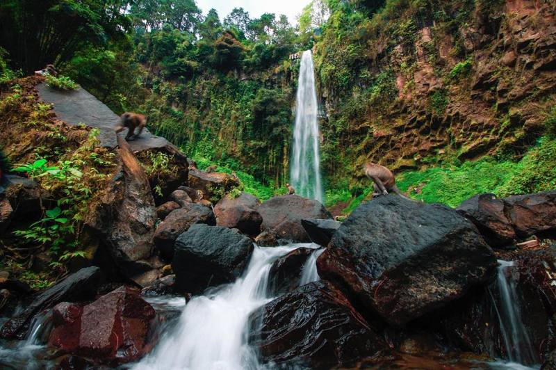 Menariknya, di sekitar air terjun ini terdapat hutan yang ditumbuhi berbagai jenis tanaman dan terdapat pula satwa berupa monyet. Tenang saja, Anda tidak perlu takut karena monyet ini sangat jinak walau menghuni hutan.