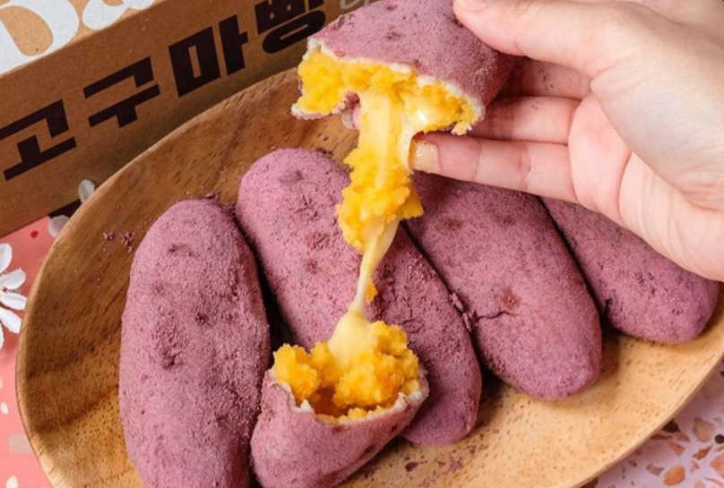 Goguma ppang, atau dikenal juga sebagai Korean sweet potato bread, adalah roti berbentuk bulat dengan tekstur kenyal seperti mochi. Roti ini memiliki rasa manis alami dari ubi jalar dan sering kali diisi dengan keju mozzarella di dalamnya, menciptakan sensasi lumer saat digigit. Goguma ppang menjadi salah satu camilan yang populer di Indonesia setelah tren makanan Korea semakin berkembang.