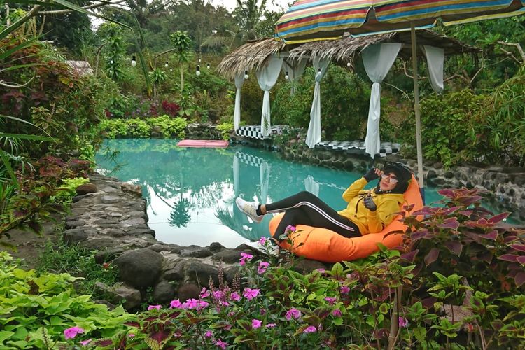 Namun sebelum bermain air, jangan lupa untuk foto-foto terlebih dulu saat di kolam renang. Sebab, spot tersebut memiliki beberapa ornamen pendukung foto estetik seperti pelampung berbentuk burung flamingo.