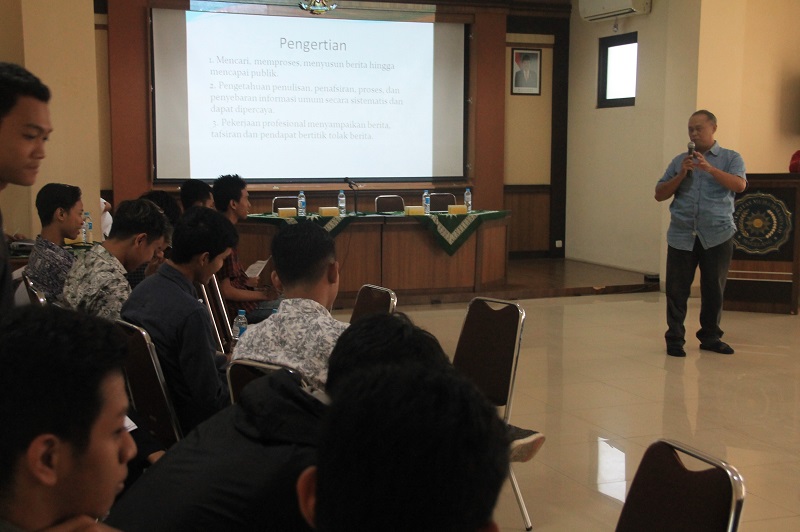 Selanjutnya peserta diberikan materi tentang bahasa jurnalistik yang disampaikan oleh D. Dj. Kliwantoro selaku Redaktur Perum LKBN ANTARA News. Bahasa jurnalistik memiliki keterkaitan dengan perkembangan yang ada di masyarakat. Jika tidak mengikuti dinamika yang terjadi ditengah masyarakat. Tata bahasa jurnalistik harus mengindahkan ekonomi bahasa yang disesuaikan dengan Ejaan Yang Disempurnakan (EYD) dalam Bahasa Indonesia yang baik dan benar. Bahasa jurnalistik tidak hanya lugas, singkat, padat, sederhana, komunikatif, dan menarik. Tetapi memakai istilah yang sedang sedang populer ditengah masyarakat, juga harus mengandung unsur 5W + 1H (What, When, Who, Why, Where + How).