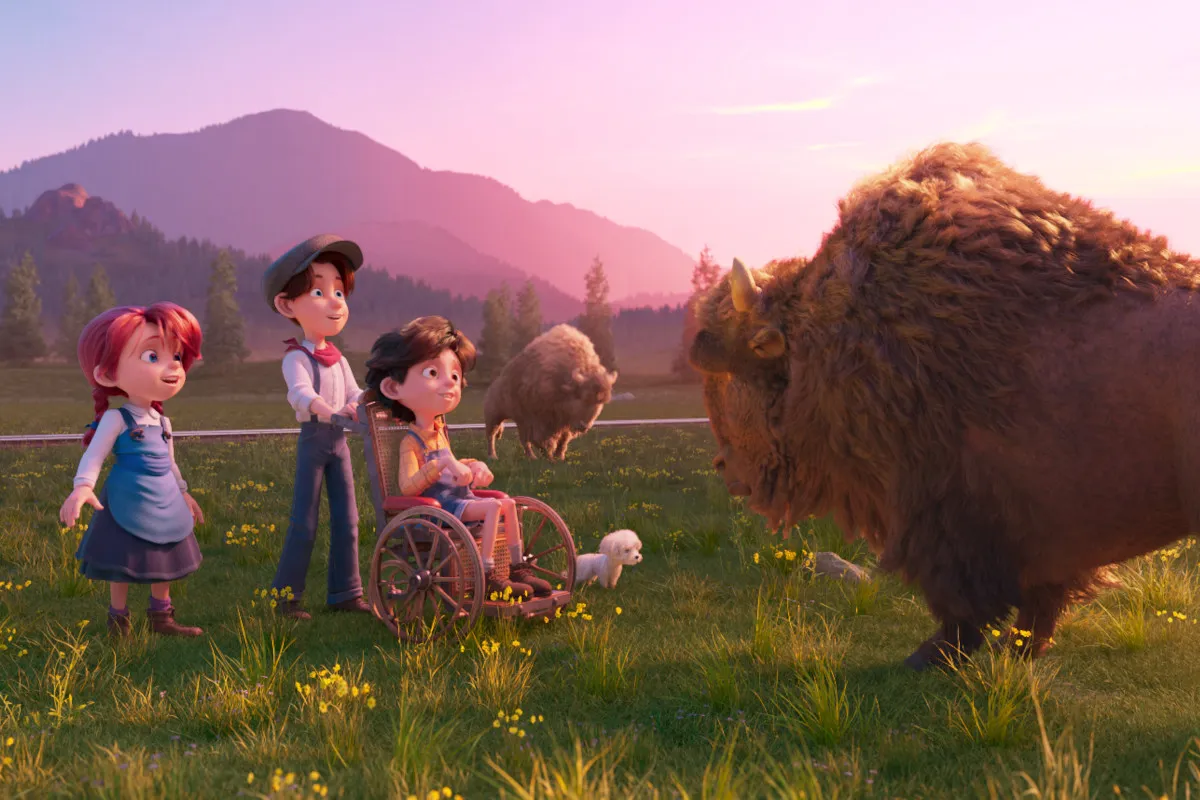 Secara visual, Buffalo Kids adalah sebuah pesta bagi mata yang digarap dengan ketelitian tinggi. Penggambaran Jalur Kereta Api Transkontinental dalam film ini berfungsi lebih dari sekadar moda transportasi; ia adalah simbol kemajuan zaman yang kontras dengan alam liar yang belum terjamah. Kita melihat bagaimana lokomotif uap raksasa membelah padang rumput, melewati tebing-tebing curam, dan menghadapi badai salju di pegunungan Sierra Nevada. Tim animasi berhasil menangkap tekstur kayu tua, karat pada besi kereta, hingga debu-debu yang beterbangan di kota-kota koboi. Estetika ini memberikan bobot realisme pada filmnya, membuat petualangan tersebut terasa berbahaya sekaligus mempesona, seolah-olah penonton turut merasakan guncangan gerbong kereta dan hembusan angin padang pasir.