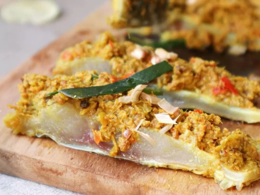 - Oleskan bumbu halus ke seluruh permukaan ikan hingga merata.