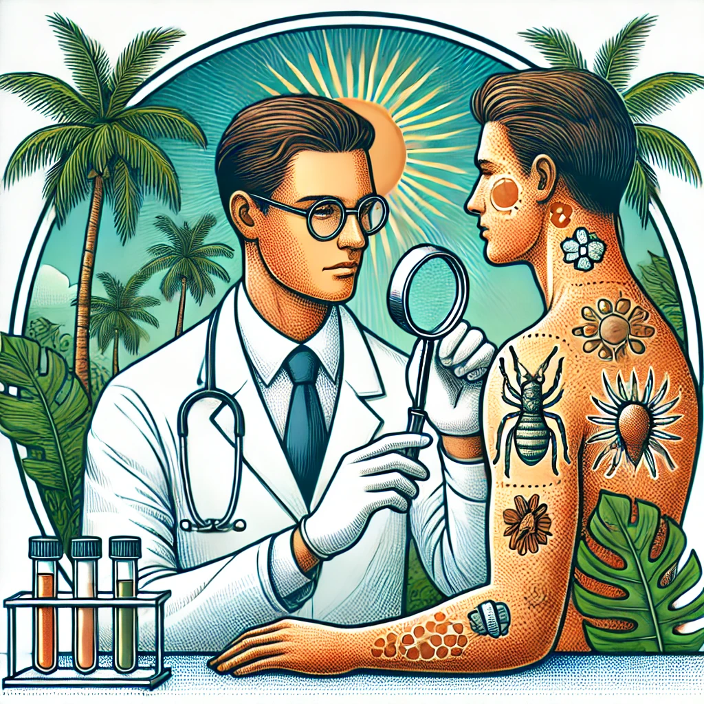 Infeksi Kulit Tropis: Studi mengenai penyakit kulit yang disebabkan oleh infeksi jamur, bakteri, virus, serta parasit yang sering ditemukan di daerah tropis.