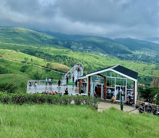Tentu saja, jembatan kaca menjadi salah satu daya tarik utama. Pengunjung dapat menikmati pemandangan alam dari ketinggian sambil berfoto dengan latar belakang yang menakjubkan. - Agrowisata Kebun Teh