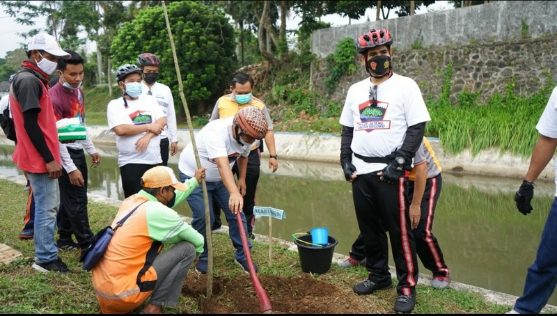 “Pohon Trembesi ini tanaman berumur panjang. Selain mencegah longsor, juga sebagai pohon pelindung, penyimpan air, dan melindungi mata air,” terang Kapolres Asep.