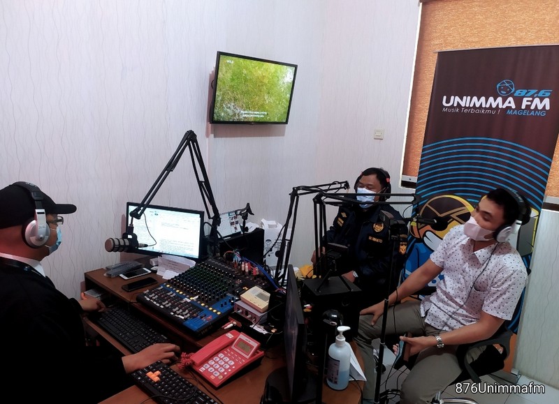 Pejabat Fungsional Bea Cukai Ahli Pertama di Talkshow Gempur Rokok Ilegal kerjasama Bea Cukai dan Diskomista kota Magelang di 87,6 Fm Radio Unimma, Senin (25/10).