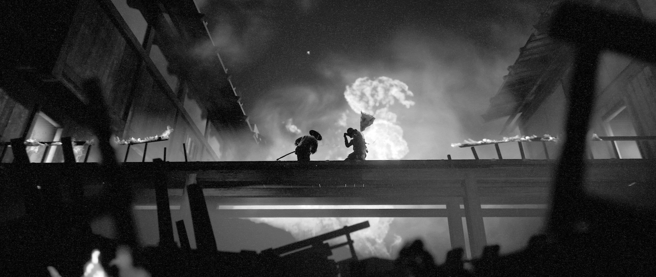Desain dan Estetika Trek to Yomi adalah surat cinta yang jelas untuk film-film samurai. Saya tidak dapat berbicara tentang akurasi atau keaslian yang ditawarkan permainan ini dalam mewakili budaya Jepang (pengembang mengklaim telah bekerja sama dengan ahli Jepang asli di Museum Edo di Tokyo). Namun, permainan ini dengan mengesankan meniru tampilan film-film Jepang yang disutradarai oleh Akira Kurosawa dan lainnya. Memilih palet warna hitam-putih dan menggunakan efek film grain adalah langkah yang jelas. Namun, apresiasi para desainer terhadap sinematografi yang indah dari film-film tersebut juga mengesankan. Apresiasi itu terlihat dalam penyajian Trek to Yomi yang sering kali memukau, meskipun kadang-kadang pengambilan gambar tersebut mengorbankan kejelasan dalam pertarungan.