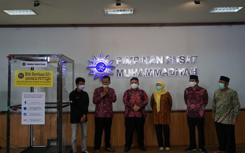 Bilik sterilisasi buatan UMMagelang menjadi yang pertamaditerima dari pimpinan pusat, karena sebelum sebelumnya tidaklolos perizinan dari Muhammadiyah Covid-19 Command Center (MCCC). “Yang pertama dari UMMagelang ini kami terimakarena insyaallah aman, dengan Ozone,” ujar Agus.
